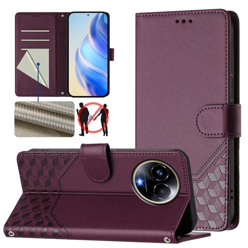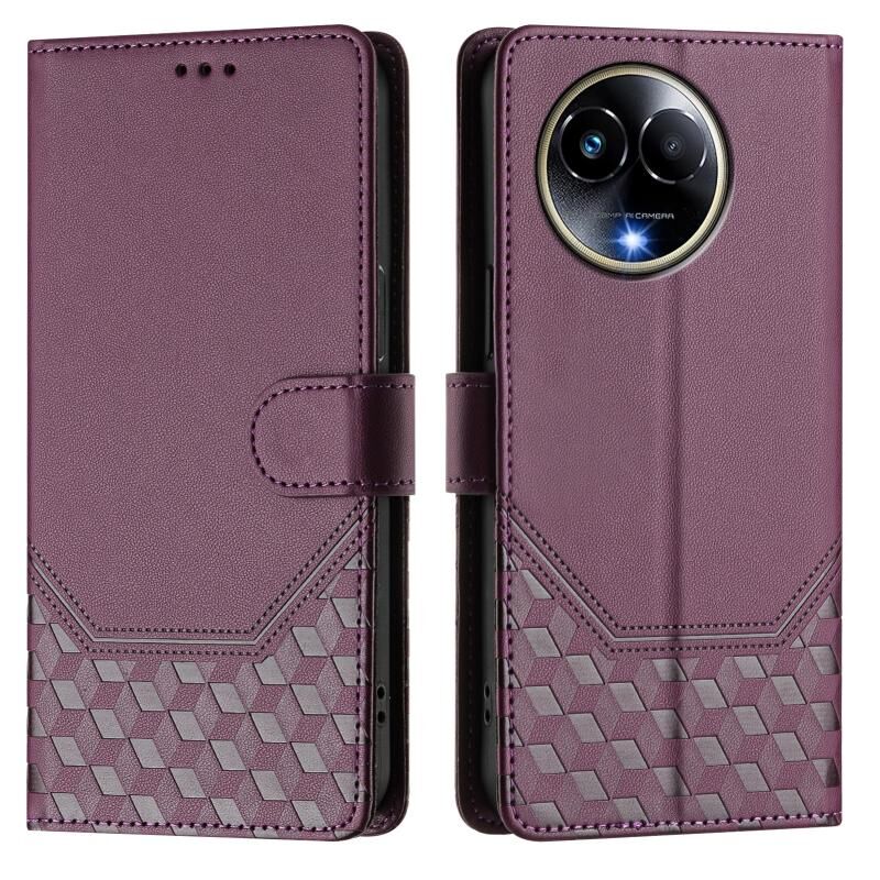 Για Realme 11 5G Global / 11x 5G / C67 Ινδία Honeycomb ανάγλυφη RFID δερμάτινη θήκη τηλεφώνου (Violet)