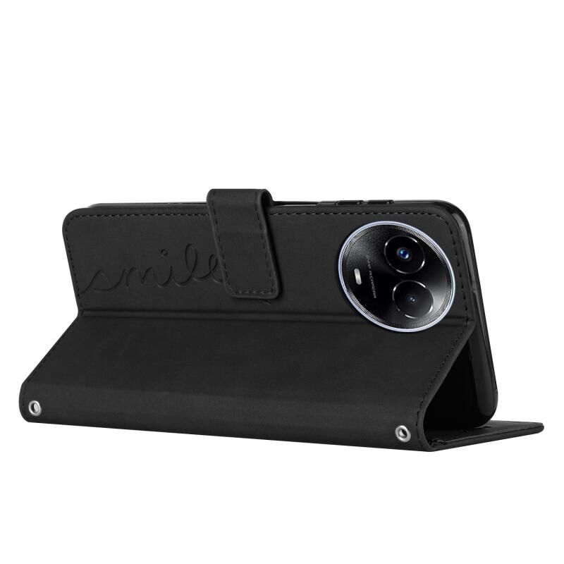 Για Realme 11 5G Global/11x δέρμα αίσθηση καρδιά μοτίβο δερμάτινη θήκη τηλεφώνου με κορδόνι (Μαύρο)