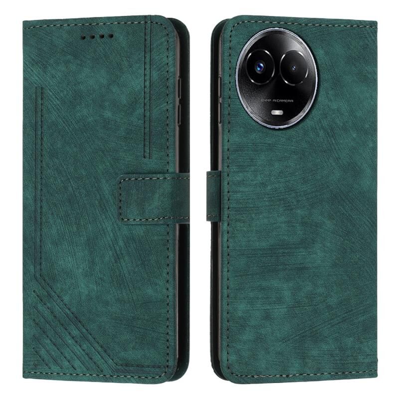 For Realme 11 5G Global/11x Skin Feel Stripe Pattern Leather Phone Case with Lanyard(Green)