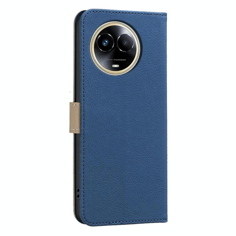 For Realme 11 5G Global / 11X Splicing Color Hollow Flower Pattern RFID Leather Phone Case(Dark Blue)