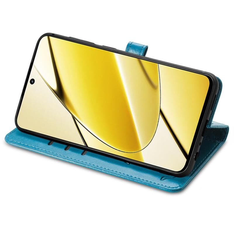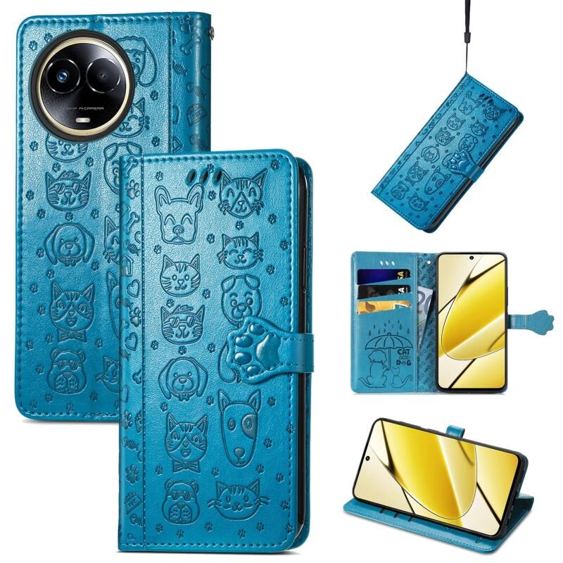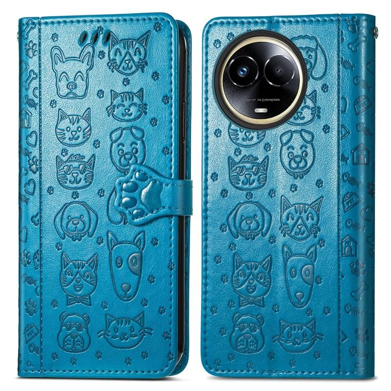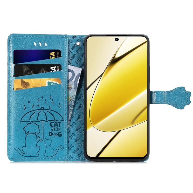 Θήκη τηλεφώνου από δέρμα με ανάγλυφο σχέδιο γάτας και σκύλου για Realme 11 5G Global (Χρυσορόδινο)