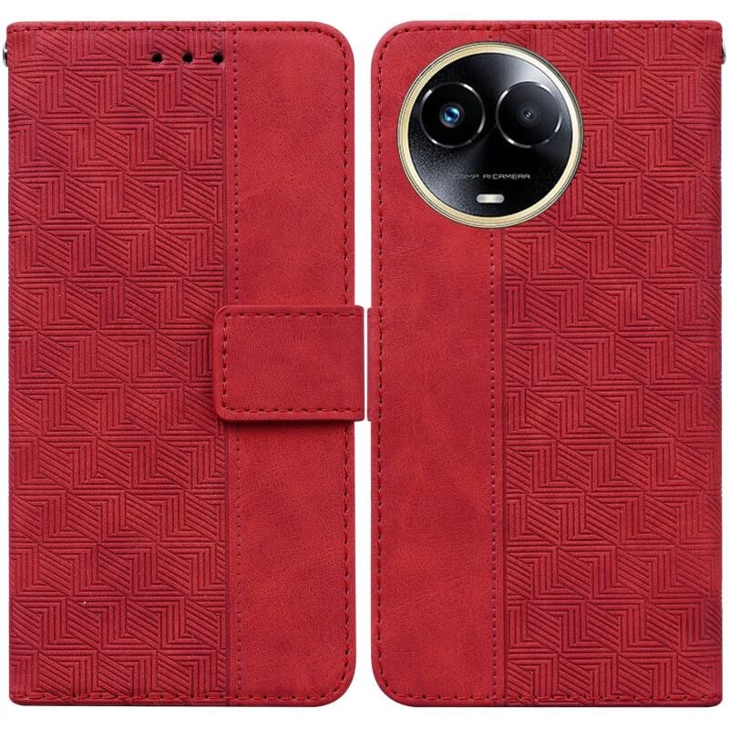 Για Realme 11 5G Παγκόσμια γεωμετρική ανάγλυφη δερμάτινη θήκη τηλεφώνου (κόκκινο)