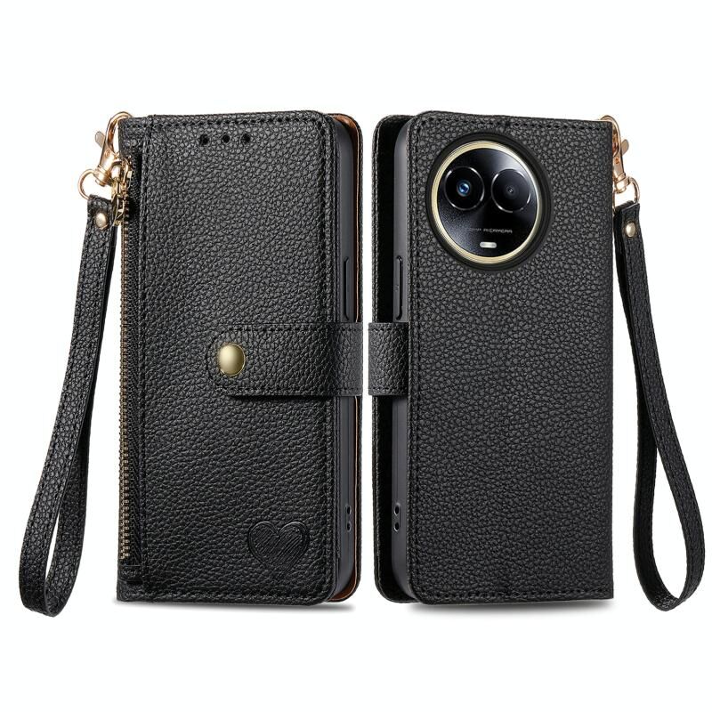 Για Realme 11 5G Global Love Zipper Λουρί Δερμάτινη Θήκη Τηλεφώνου (Πράσινο)