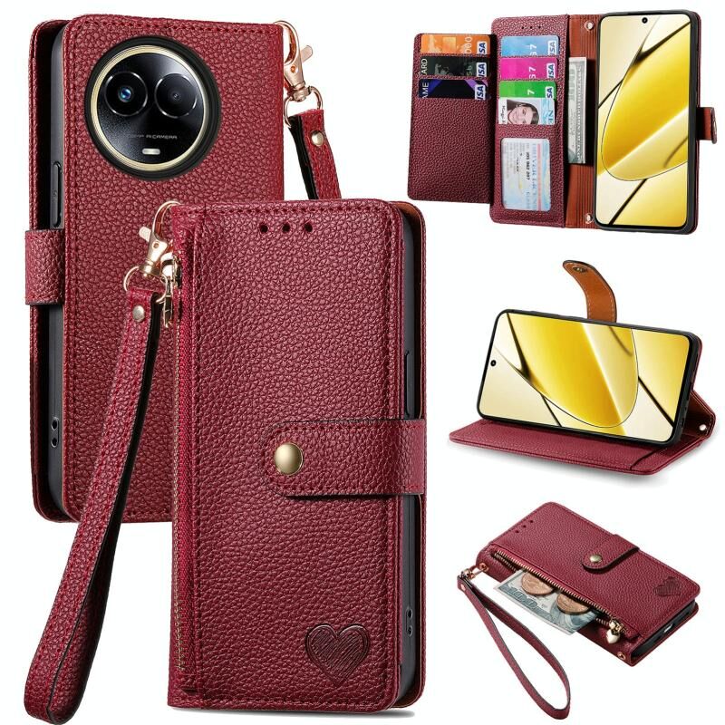 Για Realme 11 5G Global Love Zipper Λουρί Δερμάτινη Θήκη Τηλεφώνου (Πράσινο)