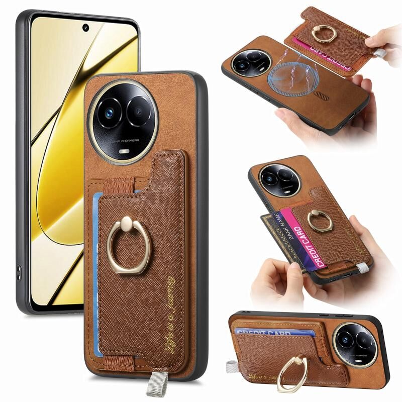 Θήκη τηλεφώνου για Realme 11 5G Global Retro Magsafe Cross Δερμάτινος Κρατητής Δακτυλιδιού Θήκη Κάρτας (Κίτρινο)