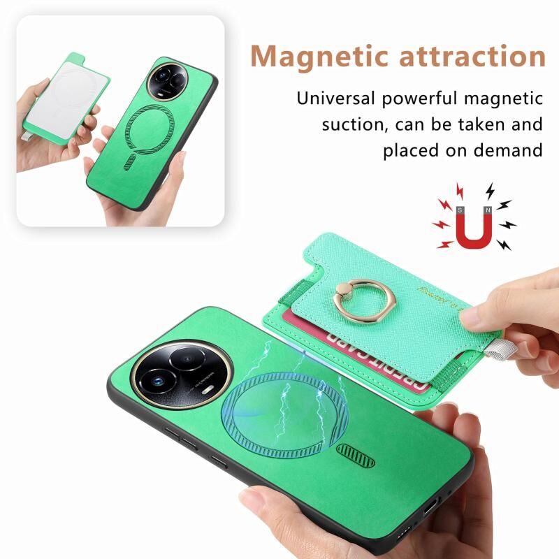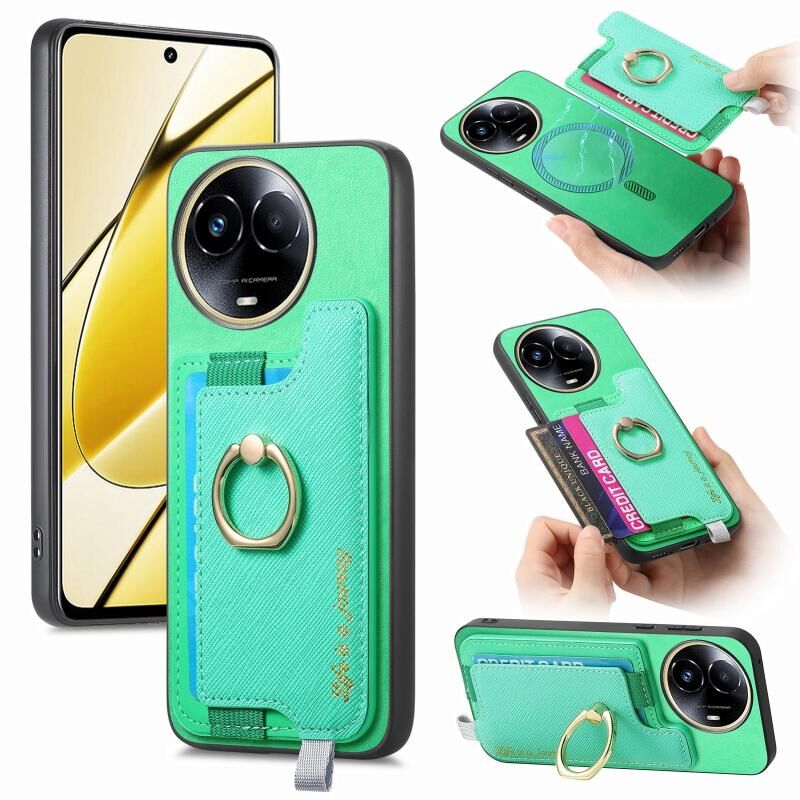 Θήκη τηλεφώνου για Realme 11 5G Global Retro Magsafe Cross Δερμάτινος Κρατητής Δακτυλιδιού Θήκη Κάρτας (Κίτρινο)