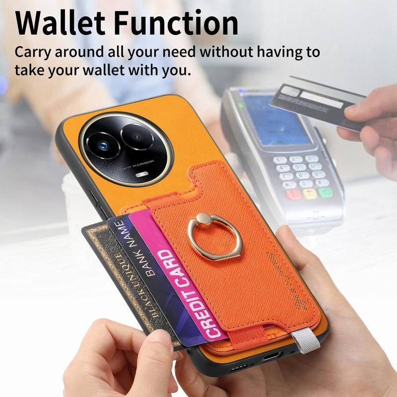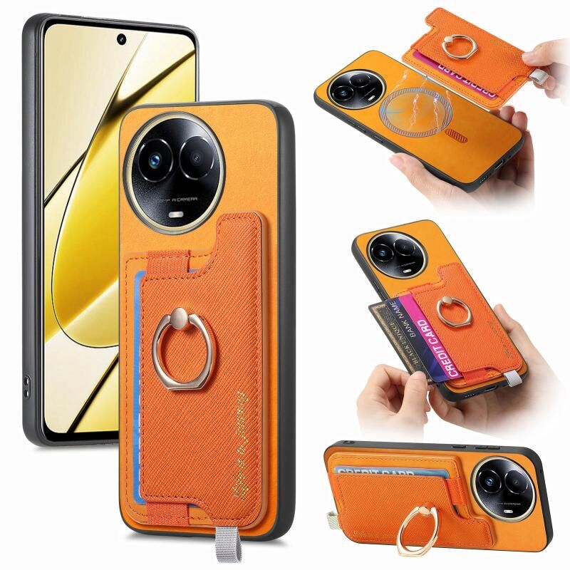 Θήκη τηλεφώνου για Realme 11 5G Global Retro Magsafe Cross Δερμάτινος Κρατητής Δακτυλιδιού Θήκη Κάρτας (Κίτρινο)