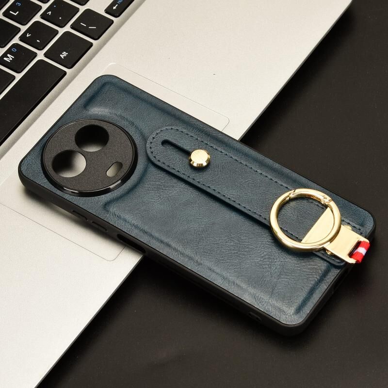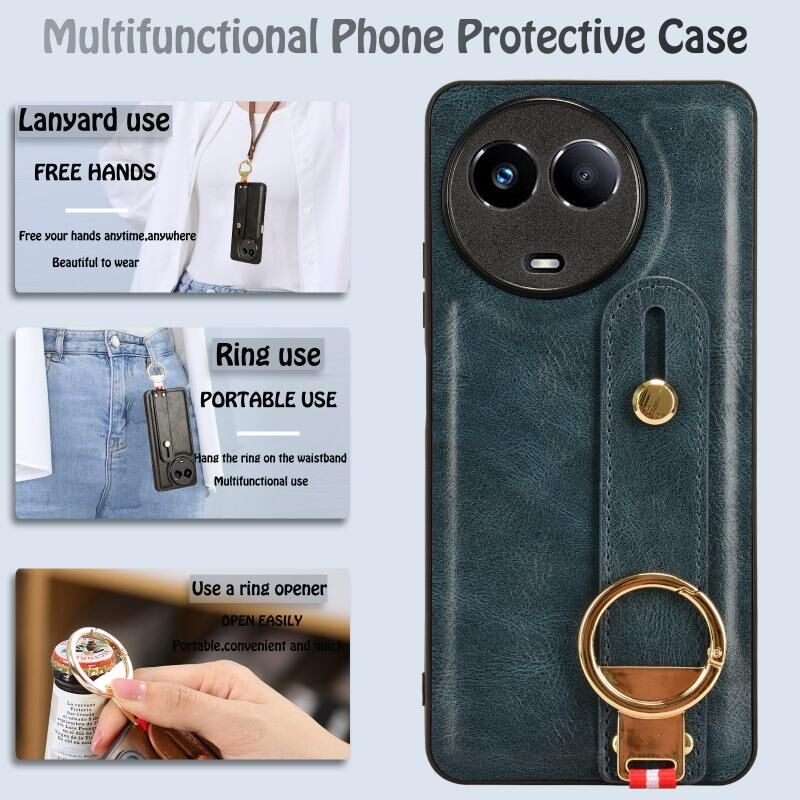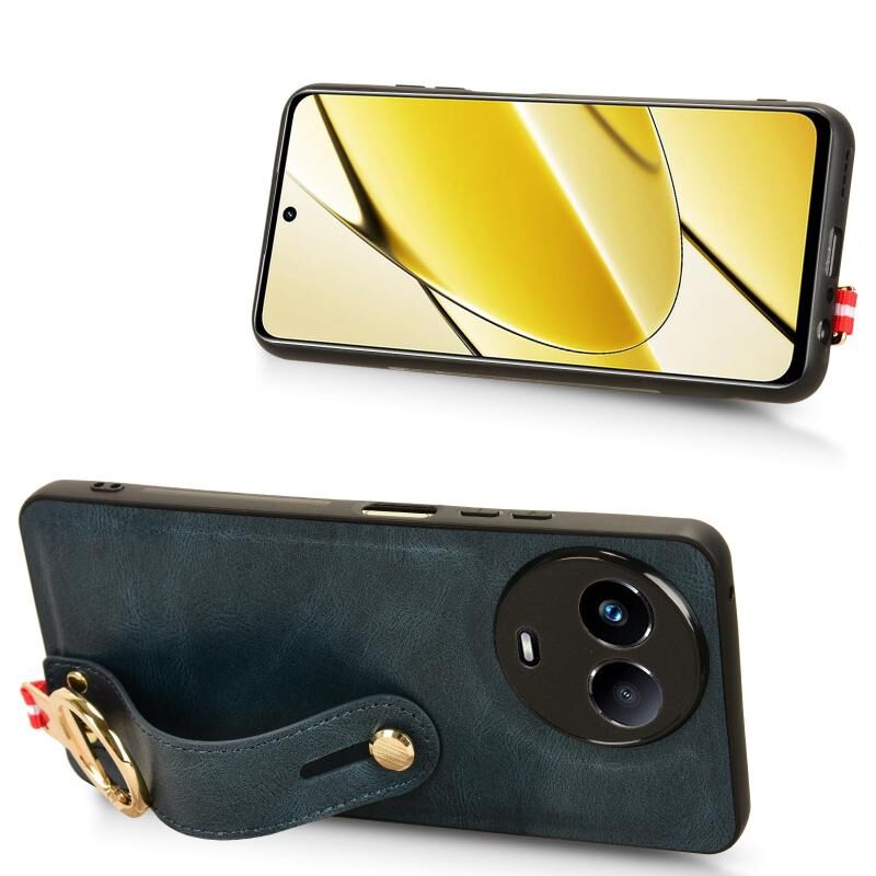 Για Realme 11 5G Παγκόσμια Wristband δέρμα πίσω υπόθεση τηλεφώνου (μπλε)