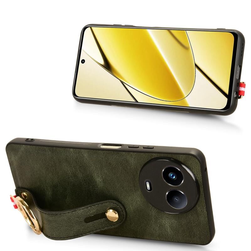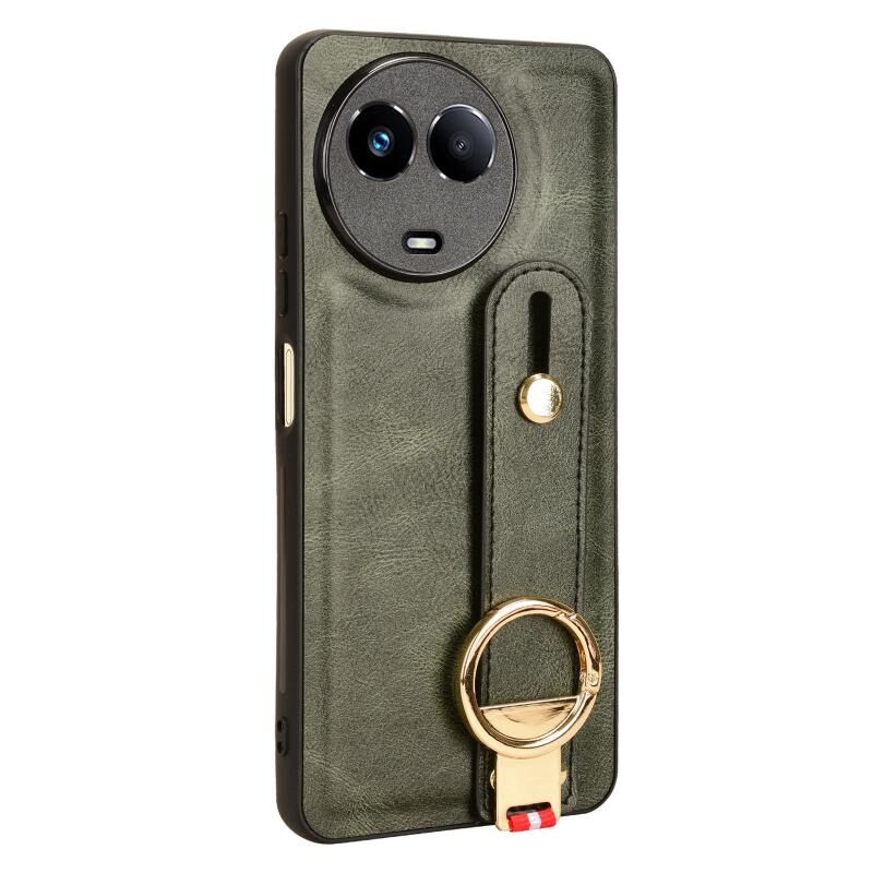 Για Realme 11 5G Παγκόσμια Wristband δέρμα πίσω υπόθεση τηλεφώνου (πράσινο)