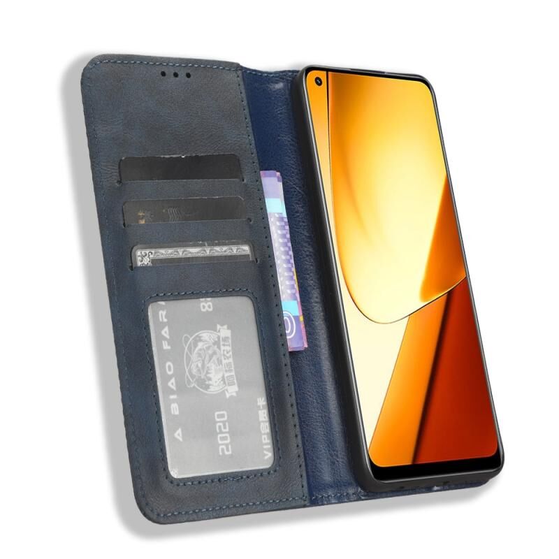 For Realme 11 5G Magnetic Buckle Retro Texture Leather Phone Case(Blue)