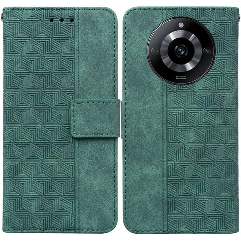 Για Realme 11 5G/Narzo 60 Ινδία έκδοση γεωμετρική ανάγλυφη δερμάτινη θήκη τηλεφώνου (πράσινο)