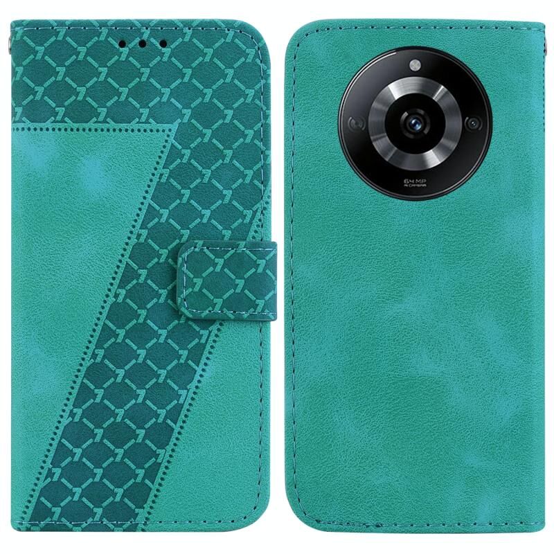 Θήκη τηλεφώνου από δέρμα με ανάγλυφο σχέδιο σε σχήμα επτά για Realme 11 5G / Narzo 60 έκδοση Ινδίας (Πράσινο)