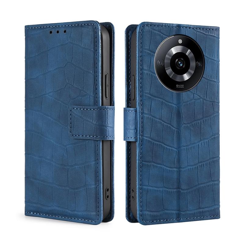 For Realme 11 5G Skin Feel Crocodile Magnetic Clasp Leather Phone Case(Blue)