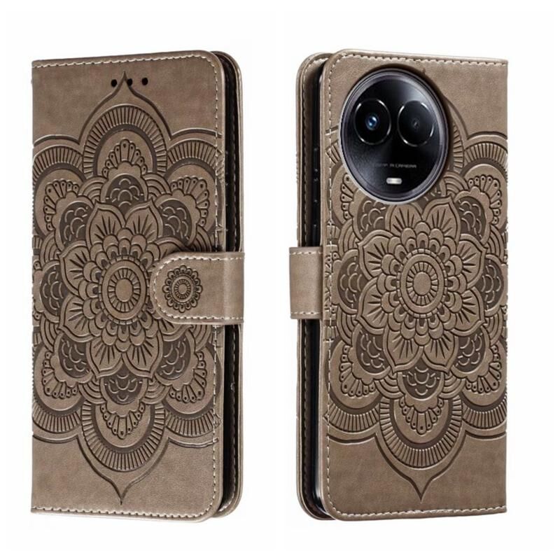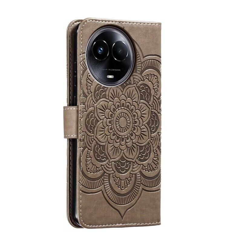Για Realme 11 5G Sun Mandala ανάγλυφο μοτίβο τηλέφωνο δερμάτινη θήκη (γκρι)