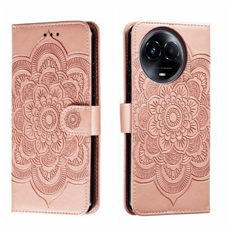 Για Realme 11 5G Sun Mandala ανάγλυφο μοτίβο τηλέφωνο δερμάτινη θήκη (Rose Gold)