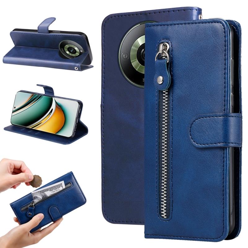 For Realme 11 Fashion Calf Texture Zipper Leather Phone Case(Blue)