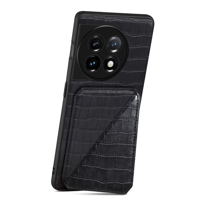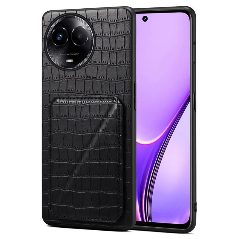 For Realme 11 Global 5G / 11X / Narzo 60X Denior Imitation Crocodile Leather Back Phone Case with Holder(Black) (Denior)