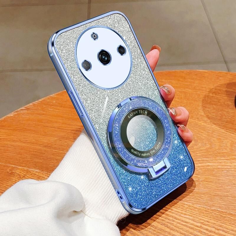 For Realme 11 Plated Gradient Glitter Round Holder TPU Phone Case(Sierra Blue)