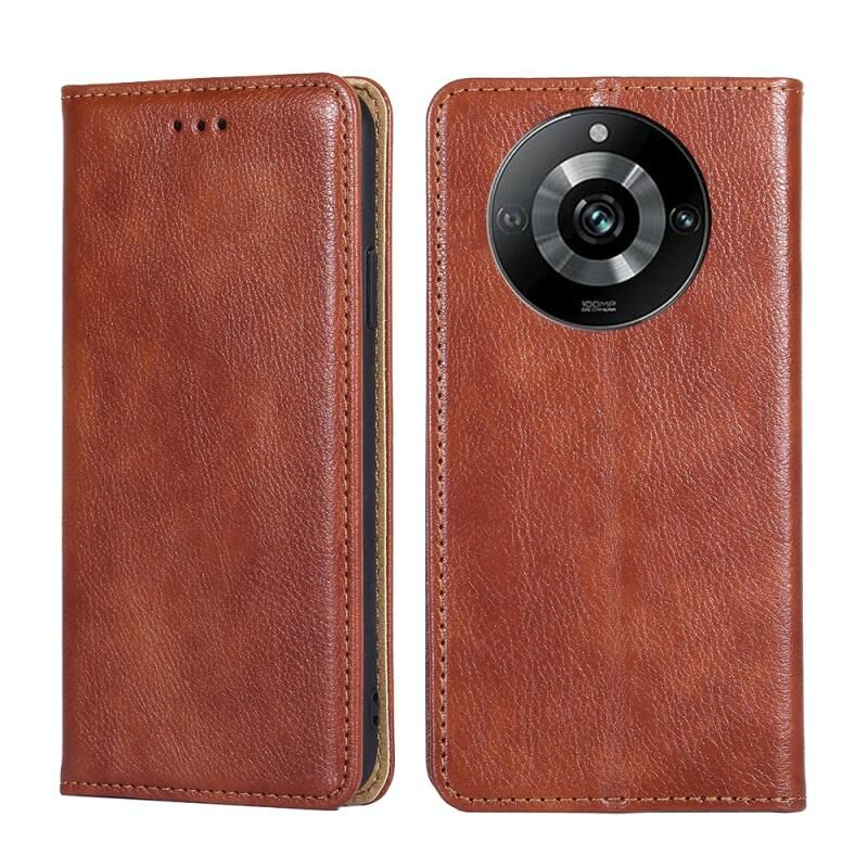 Για Realme 11 Pro / 11 Pro + 5G Gloss Oil Solid Color μαγνητική δερμάτινη θήκη τηλεφώνου (καφέ)