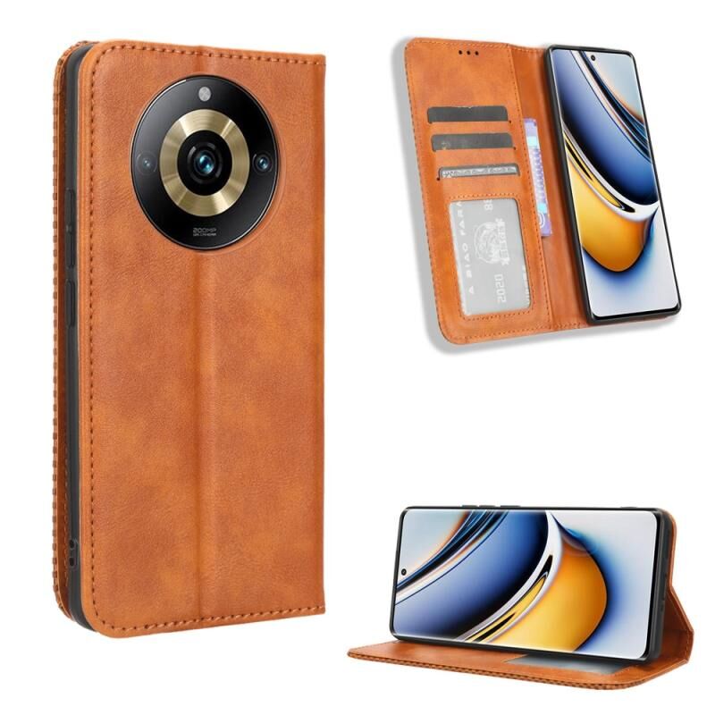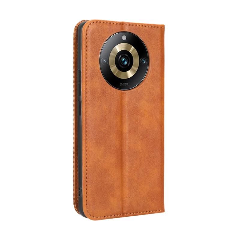 For Realme 11 Pro / 11 Pro+ Magnetic Buckle Retro Texture Leather Phone Case(Brown)