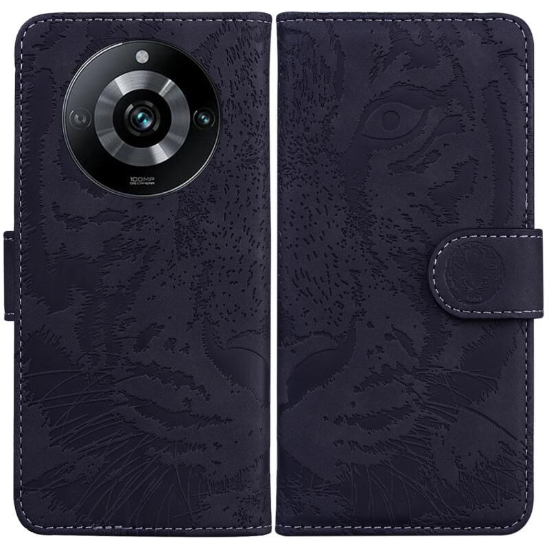 Θήκη τηλεφώνου από δέρμα με σχέδιο ανάγλυφου τίγρη για Realme 11 Pro / 11 Pro+ / Narzo 60 Pro (Μαύρο)