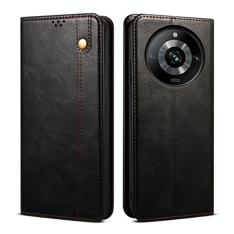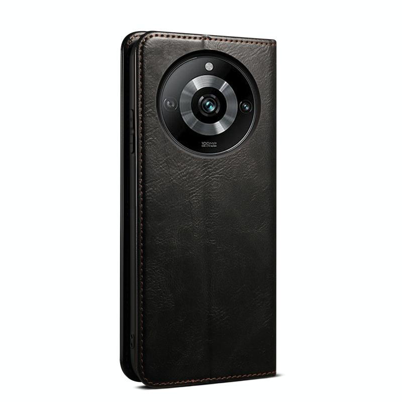 Θήκη τηλεφώνου από δέρμα με υφή Crazy Horse και κερί λαδιού για Realme 11 Pro / 11 Pro+ (Μαύρο)