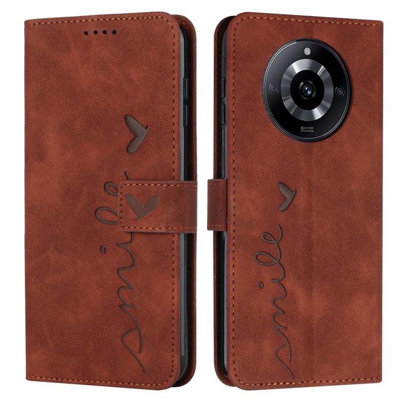 Για Realme 11 Pro/11 Pro+ δέρμα αίσθηση καρδιά μοτίβο δερμάτινη θήκη τηλεφώνου (καφέ)