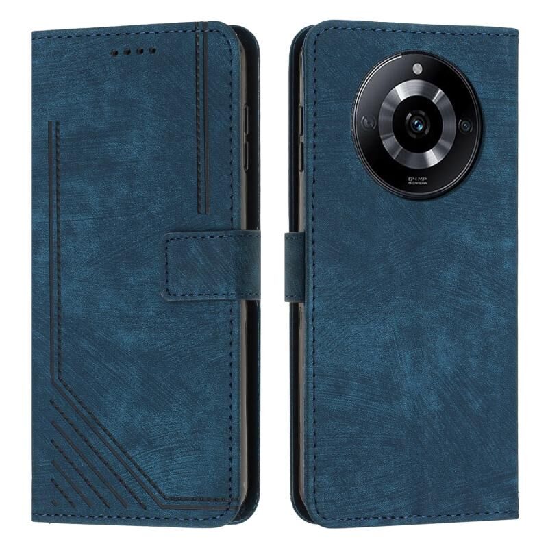 For Realme 11 Pro/11 Pro+ Skin Feel Stripe Pattern Leather Phone Case with Lanyard(Blue)