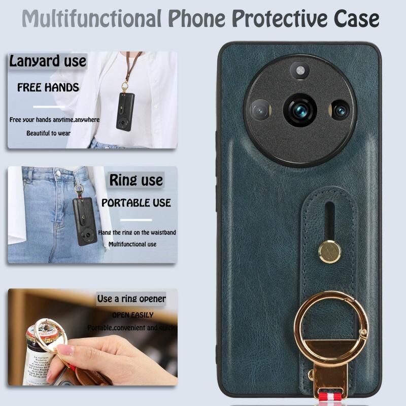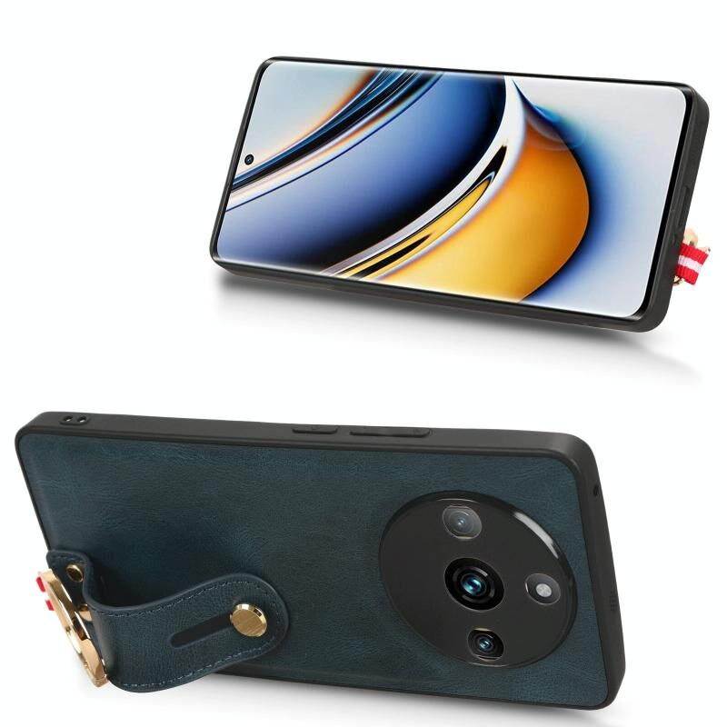 Για Realme 11 Pro / 11 Pro+ Wristband δερμάτινη πίσω θήκη τηλεφώνου (μπλε)