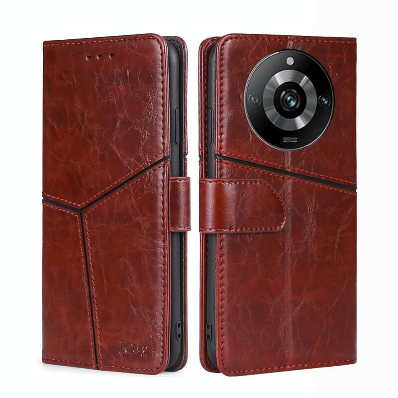 Για Realme 11 Pro 5G / 11 Pro + 5G Γεωμετρική ραφή δερμάτινη θήκη τηλεφώνου (σκούρο καφέ)