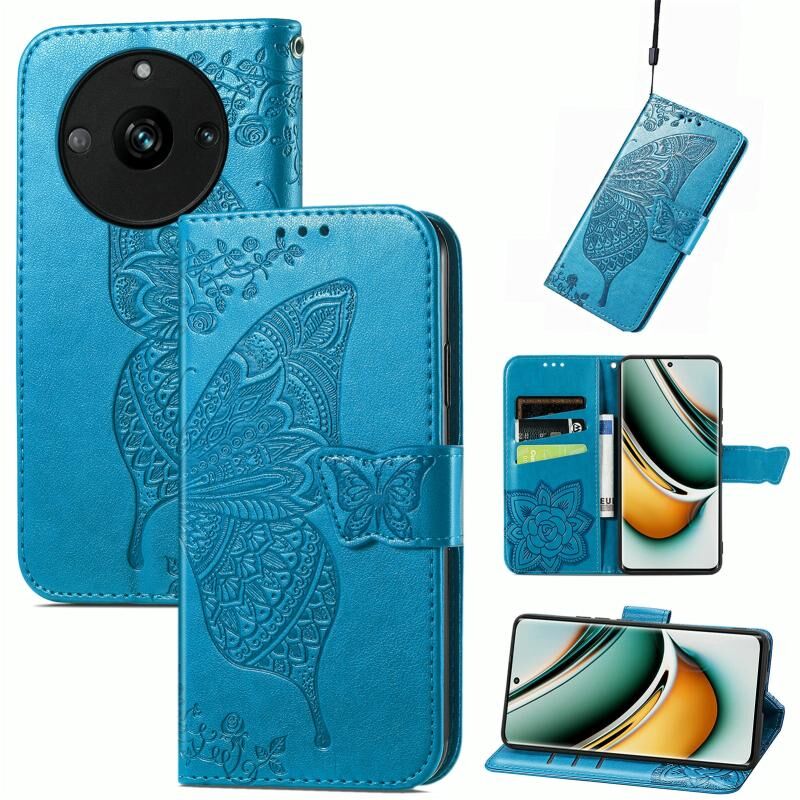 Θήκη Δερμάτινη με ανάγλυφο σχέδιο πεταλούδας για Realme 11 Pro (Μπλε)