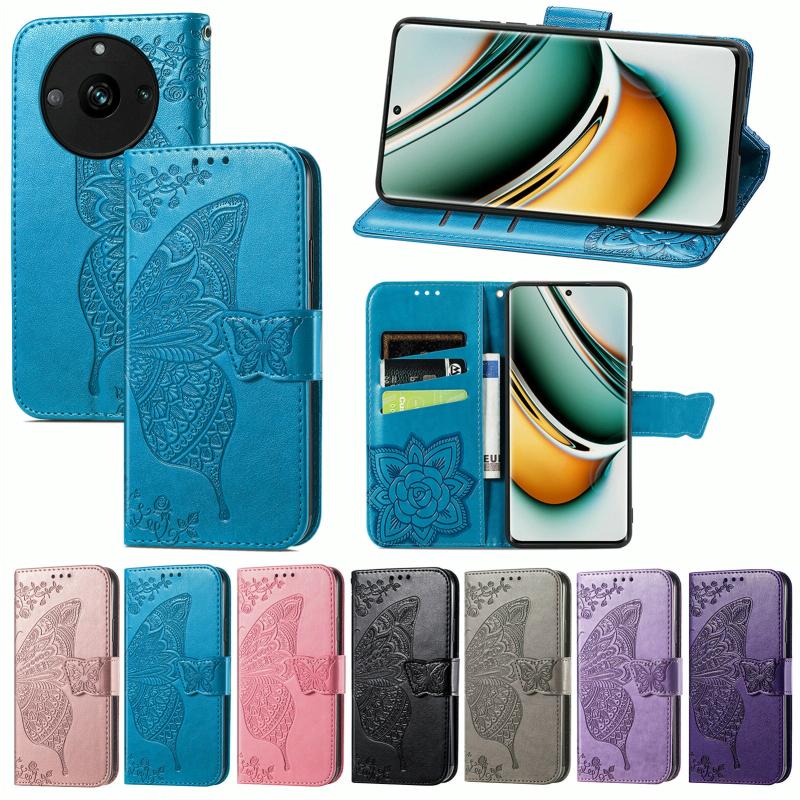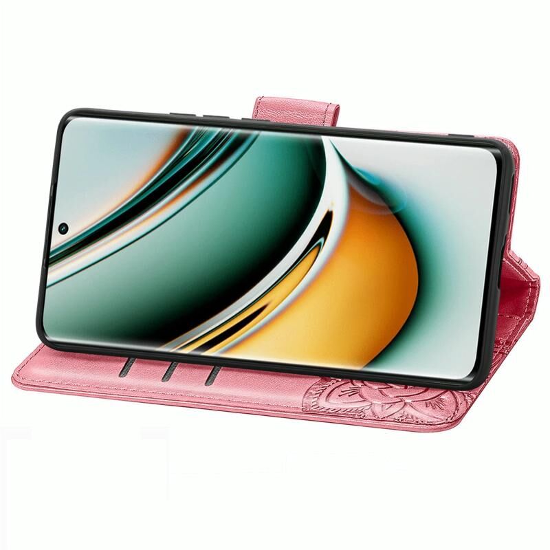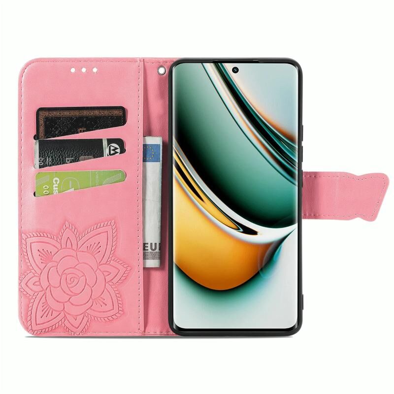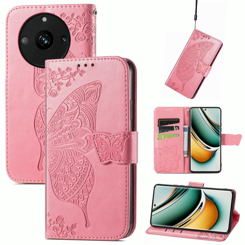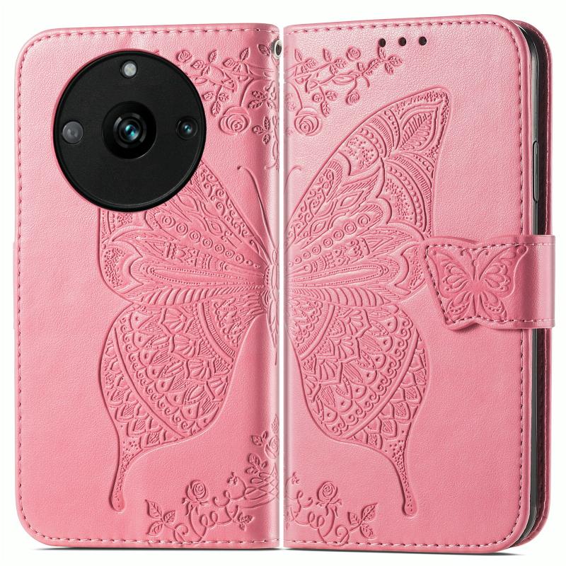 Θήκη Δερμάτινη με ανάγλυφο σχέδιο πεταλούδας για Realme 11 Pro (Ροζ)