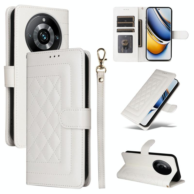 For Realme 11 Pro+ Diamond Lattice Leather Flip Phone Case(White)