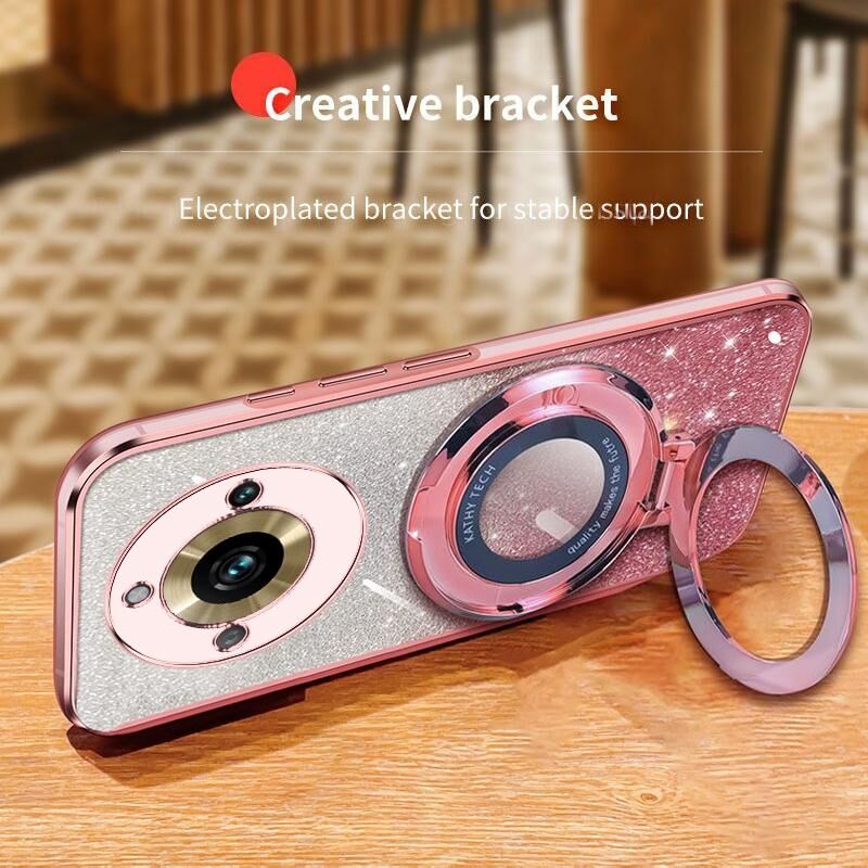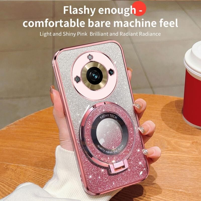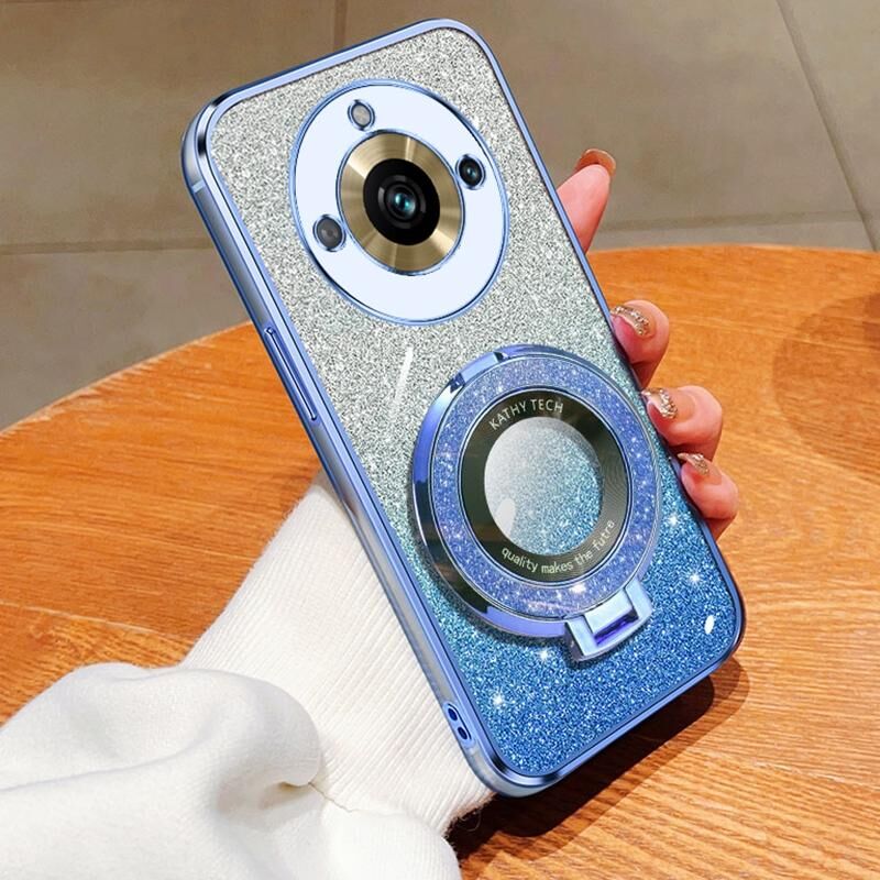 For Realme 11 Pro Plated Gradient Glitter Round Holder TPU Phone Case(Sierra Blue)