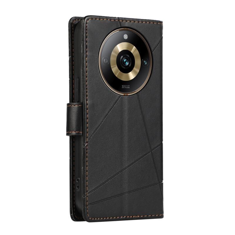 For Realme 11 Pro PU Genuine Leather Texture Embossed Line Phone Case(Black)