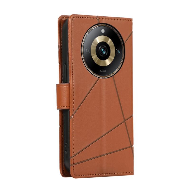 For Realme 11 Pro PU Genuine Leather Texture Embossed Line Phone Case(Brown)