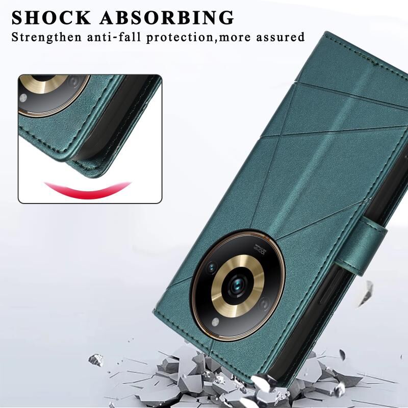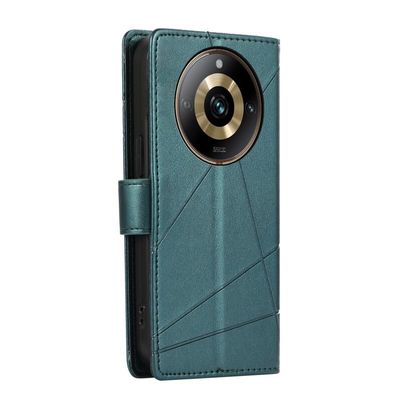 For Realme 11 Pro PU Genuine Leather Texture Embossed Line Phone Case(Green)