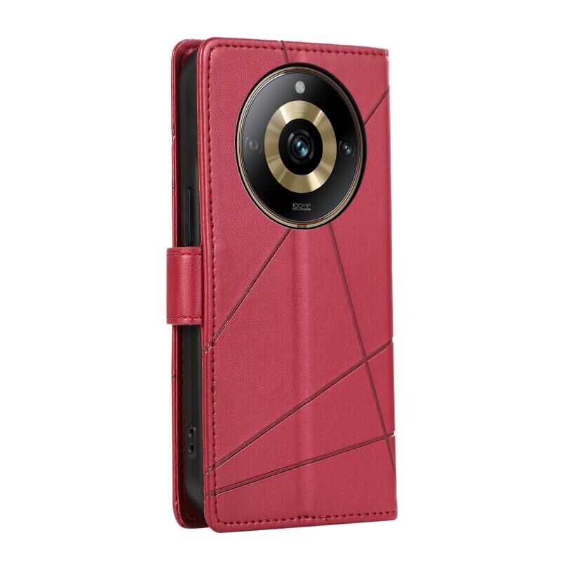 For Realme 11 Pro PU Genuine Leather Texture Embossed Line Phone Case(Red)