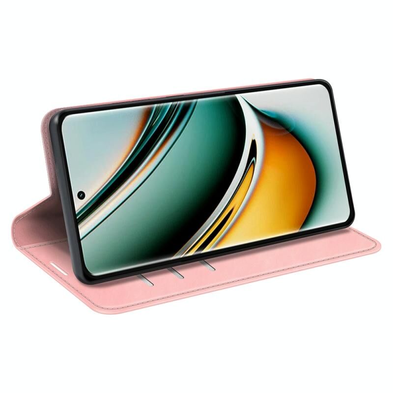Θήκη τηλεφώνου από δέρμα με μαγνητική απορρόφηση και ρετρό σχεδιασμό για Realme 11 Pro (Ροζ)