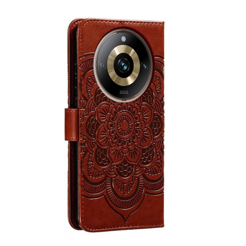 Για Realme 11 Pro Sun Mandala ανάγλυφο μοτίβο τηλέφωνο δερμάτινη θήκη (καφέ)