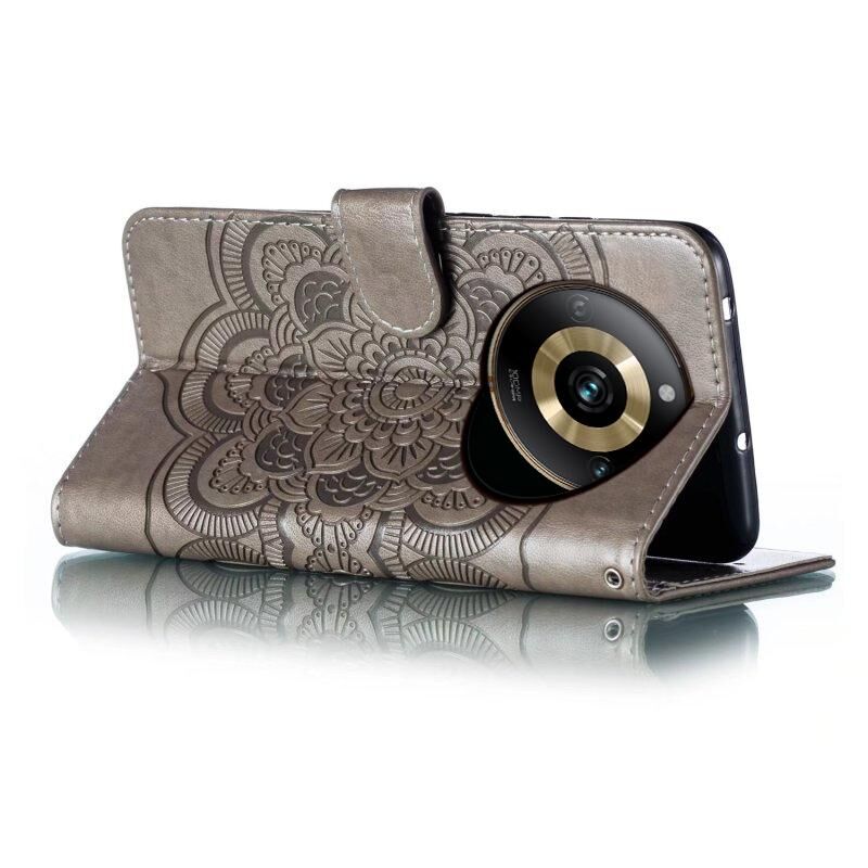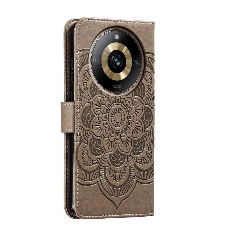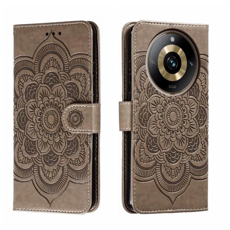 Για Realme 11 Pro Sun Mandala ανάγλυφο μοτίβο τηλέφωνο δερμάτινη θήκη (γκρι)
