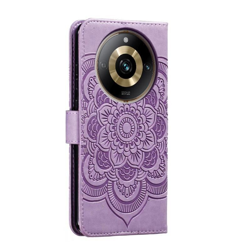 Για Realme 11 Pro Sun Mandala ανάγλυφο μοτίβο τηλέφωνο δερμάτινη θήκη (μωβ)