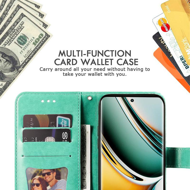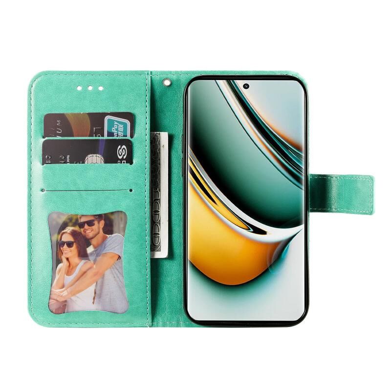 For Realme 11 Seven-petal Flowers Embossing Leather Phone Case(Green)