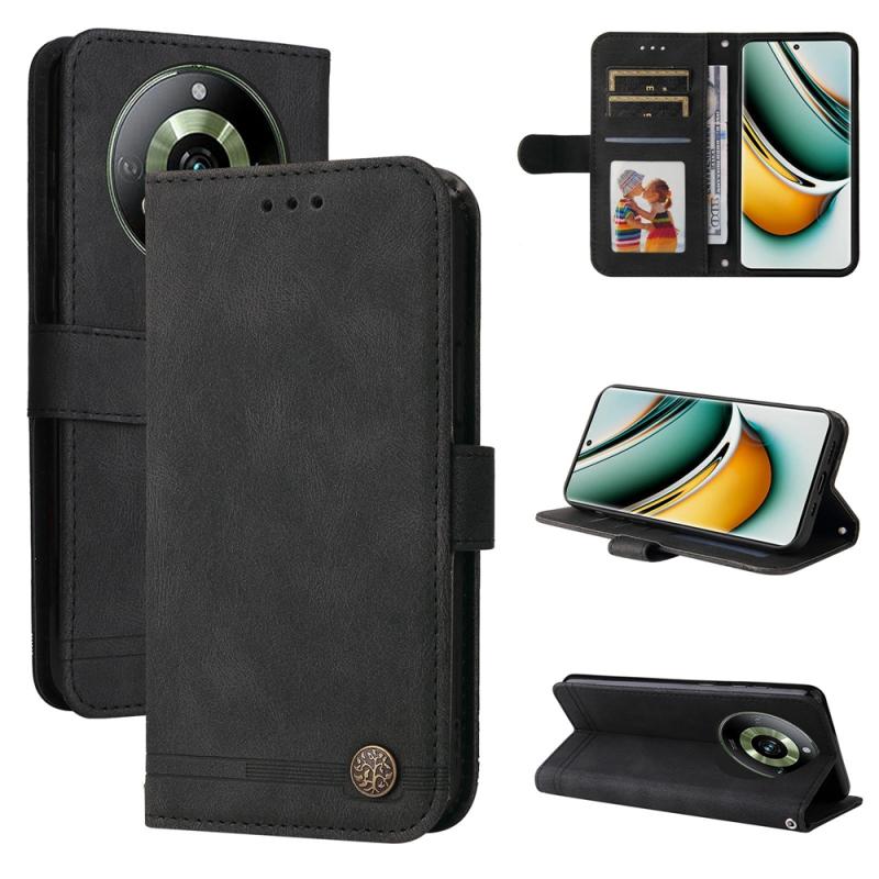 For Realme 11 Skin Feel Life Tree Metal Button Leather Phone Case(Black)