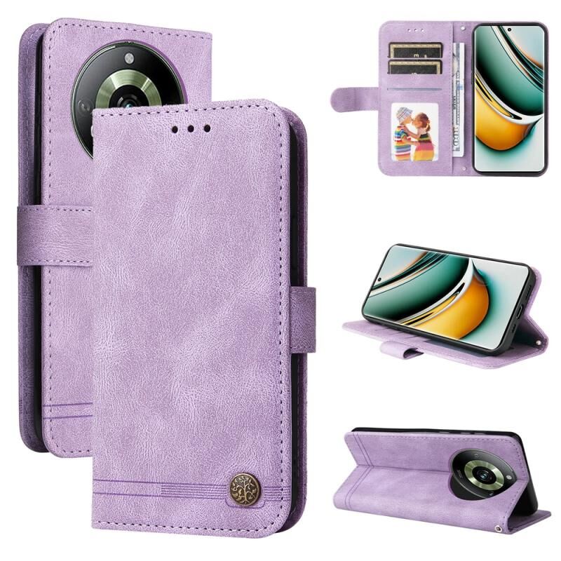 For Realme 11 Skin Feel Life Tree Metal Button Leather Phone Case(Purple)