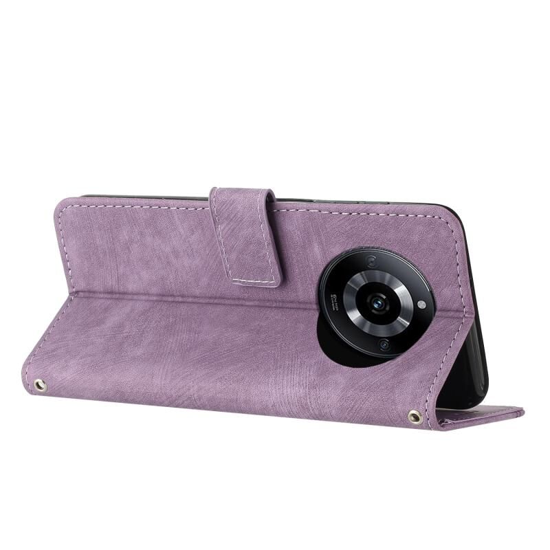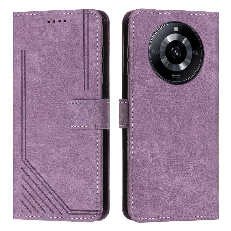 For Realme 11 Skin Feel Stripe Pattern Leather Phone Case with Lanyard(Purple)
