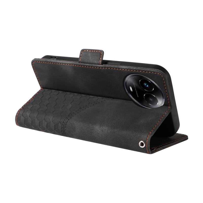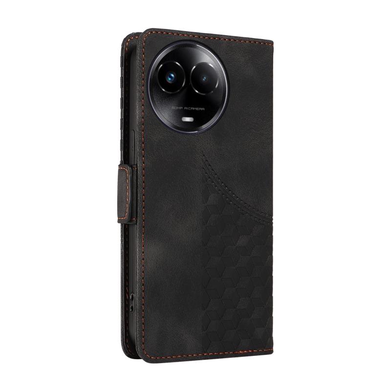 For Realme 11X / 11 5G Global Embossed Rhombus Starry Leather Phone Case(Black)