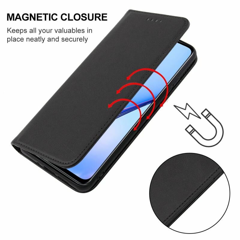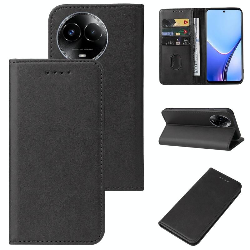 Για Realme 11x Μαγνητικό κλείσιμο δερμάτινη θήκη τηλεφώνου (Μαύρο)