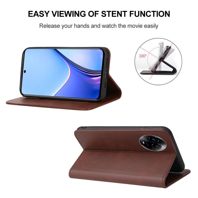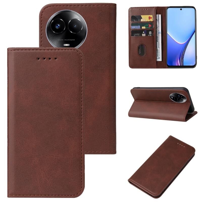 Για Realme 11x Μαγνητικό κλείσιμο δερμάτινη θήκη τηλεφώνου (καφέ)