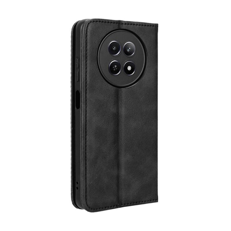 For Realme 12 / 12X 5G Magnetic Buckle Retro Texture Leather Phone Case(Black)